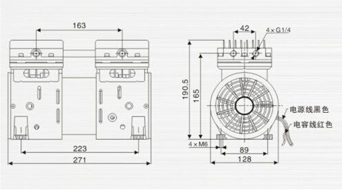 5.檢查壓縮泵各元件無異常后,將電源線插頭插到符合要求的電源插座上(電源插座必須接地良好),機器開始工作。