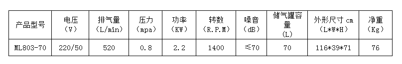 8.本產(chǎn)品為臺冠ML803-70無油空氣壓縮機(jī),嚴(yán)禁加油潤滑。